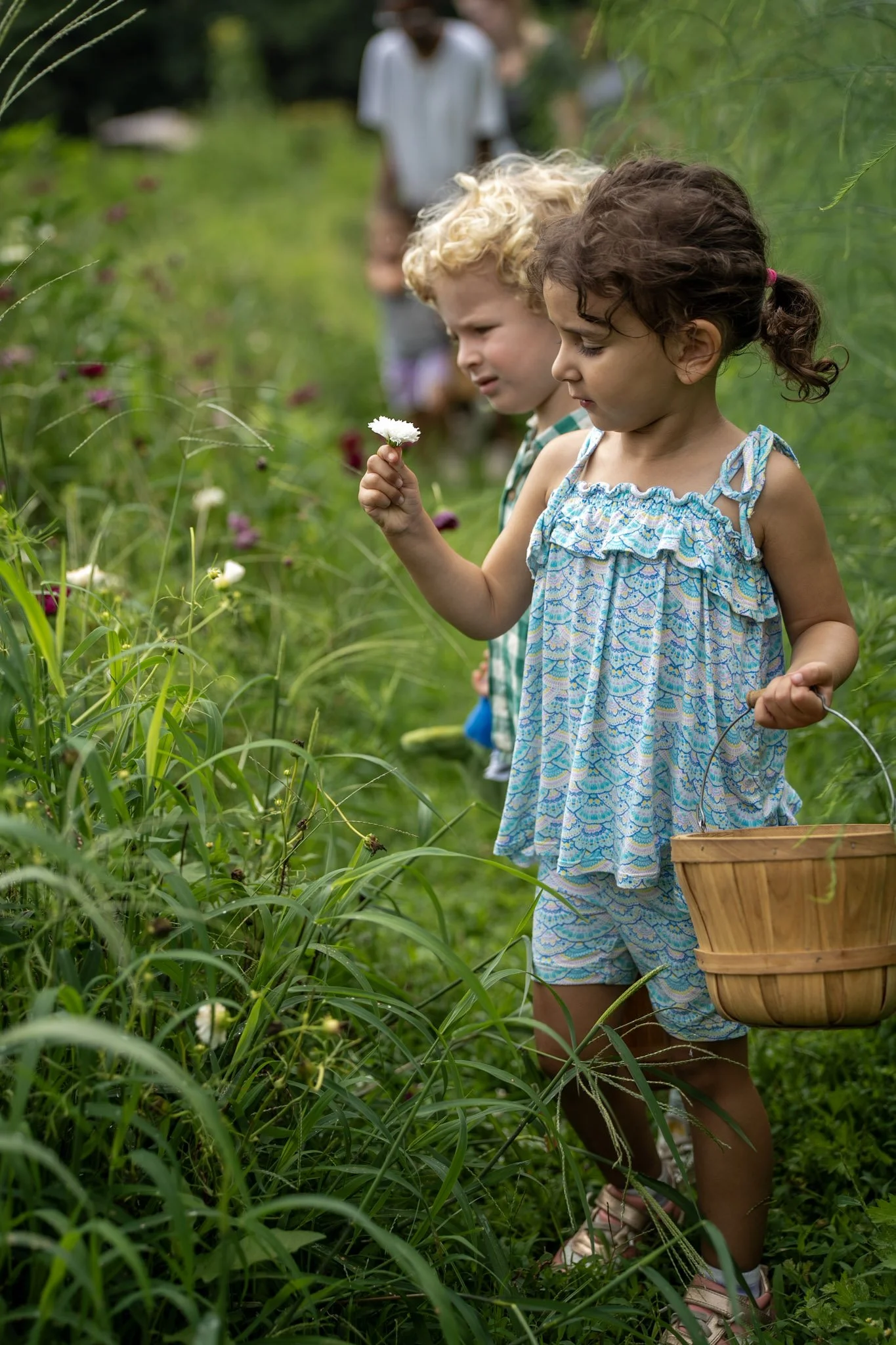 Starting June 15 and ending June 26, June camp is our soft start to summer on the farm. With one mixed age group of children ages 3 -7, our Waldorf teachers integrate art, farm chores, songs and games into each morning. Your child will visit the chickens, taste vegetables growing from the farm, explore and play.